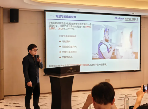 在“射线整机及应用”分会场上,公司团队展示了冷阴极多焦点口内高清成像系统的应用进展情况。凭借多焦点分布式X射线源技术的创新应用,结合三维图像采集和智能成像算法,显著提升了咬合面及邻位龋齿、根部骨折、表面损伤与裂缝、变异的细小根管等细微牙齿病灶的分辨率和清晰度。这项研究的最新进展不仅为口腔精准诊疗更新了标准,更验证了真空电子器件在医疗设备升级中的关键价值。